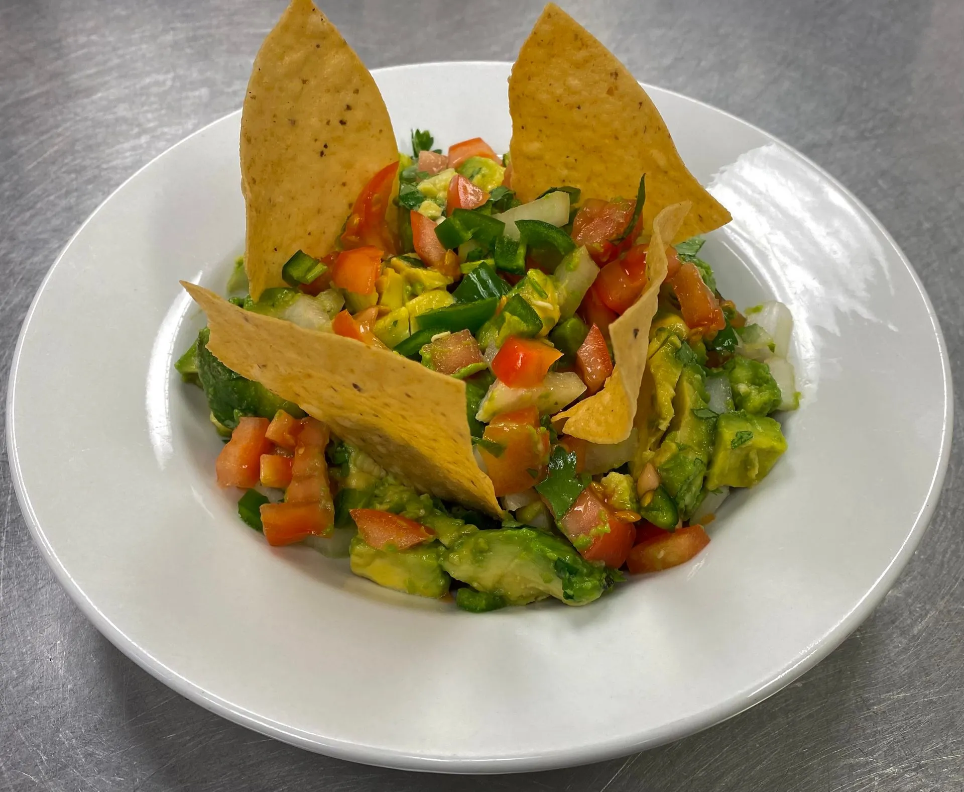 Made with chunks of white chicken, special sauce, rice, pico and avocado slices. Served with tortillas.
